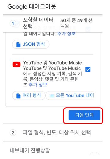 2. 데이터 및 개인정보 보호 ▷ 데이터 다운로드 ▷ 구글 테이크아웃 ▷ 다음 단계 ▷ 내보내기 실행!