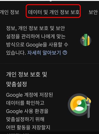 2. 데이터 및 개인 정보 보호 ▷ 하단으로 스크롤을 내리다 보면 옵션 더보기가 보입니다. ▷ Google 계정 삭제 버튼을 눌러 주세요.▷ 그럼, 본인 인증을 위해 비밀번호를 입력하라고 요청합니다. ▷ 비밀번호 입력한 뒤 '계정삭제' 버튼을 눌러 삭제를 실행하세요.