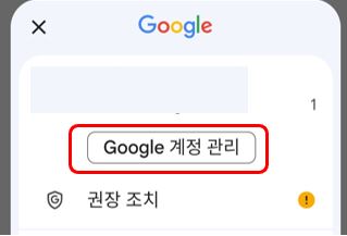 1. 구글 앱 오른쪽 상단 나의 아이콘으로 들어가세요. ▷ Google 계정관리를 눌러 주세요.